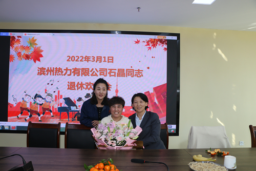 2022年3月1日下午,濱州熱力有限公司為退休職工石晶舉辦歡送會。歡送會在公司工會主席藺靜主持下召開。濱州熱力有限公司黨委書記、董事長、總經(jīng)理王巖芹,黨委委員、副總經(jīng)理王福華先后為石晶送上祝福,她們稱石晶同志自2011年入職以來,兢兢業(yè)業(yè)、無私奉獻(xiàn),以熱力人崇高的使命感和責(zé)任感為公司的發(fā)展貢獻(xiàn)力量,祝愿她退休后的生活同樣精彩,記得;“家”看看。