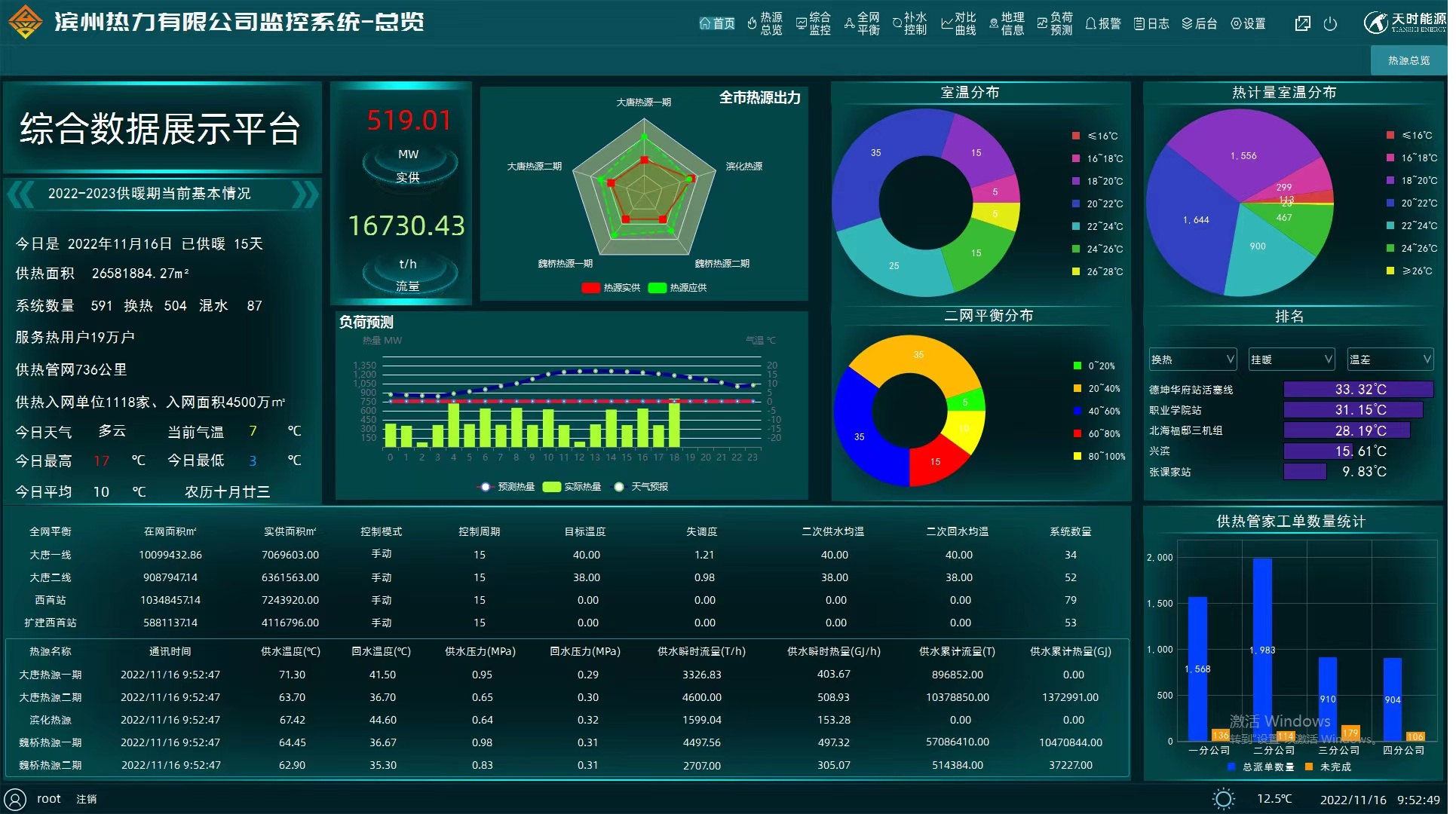 堅(jiān)持科創(chuàng)賦能供熱,利用智慧平臺分析功能,加大調(diào)節(jié)主動性,根據(jù)天氣情況及時準(zhǔn)確調(diào)度熱源熱量供應(yīng),2021-2022采暖季熱耗同比下降3.6%,電耗同比下降29%,水耗同比下降12.7%;堅(jiān)持引入新技術(shù),自控系統(tǒng)增設(shè)負(fù)荷預(yù)測等功能模塊,實(shí)現(xiàn)“一站一指標(biāo)”個性化精準(zhǔn)調(diào)控,進(jìn)一步提高運(yùn)行數(shù)據(jù)的綜合展示與調(diào)度及節(jié)能降耗水平;堅(jiān)持為城市發(fā)展注入低碳元素,計(jì)量安裝面積位列全省第一方陣,退費(fèi)金額今年共計(jì)6500萬員,退費(fèi)力度列全省第一梯隊(duì)。