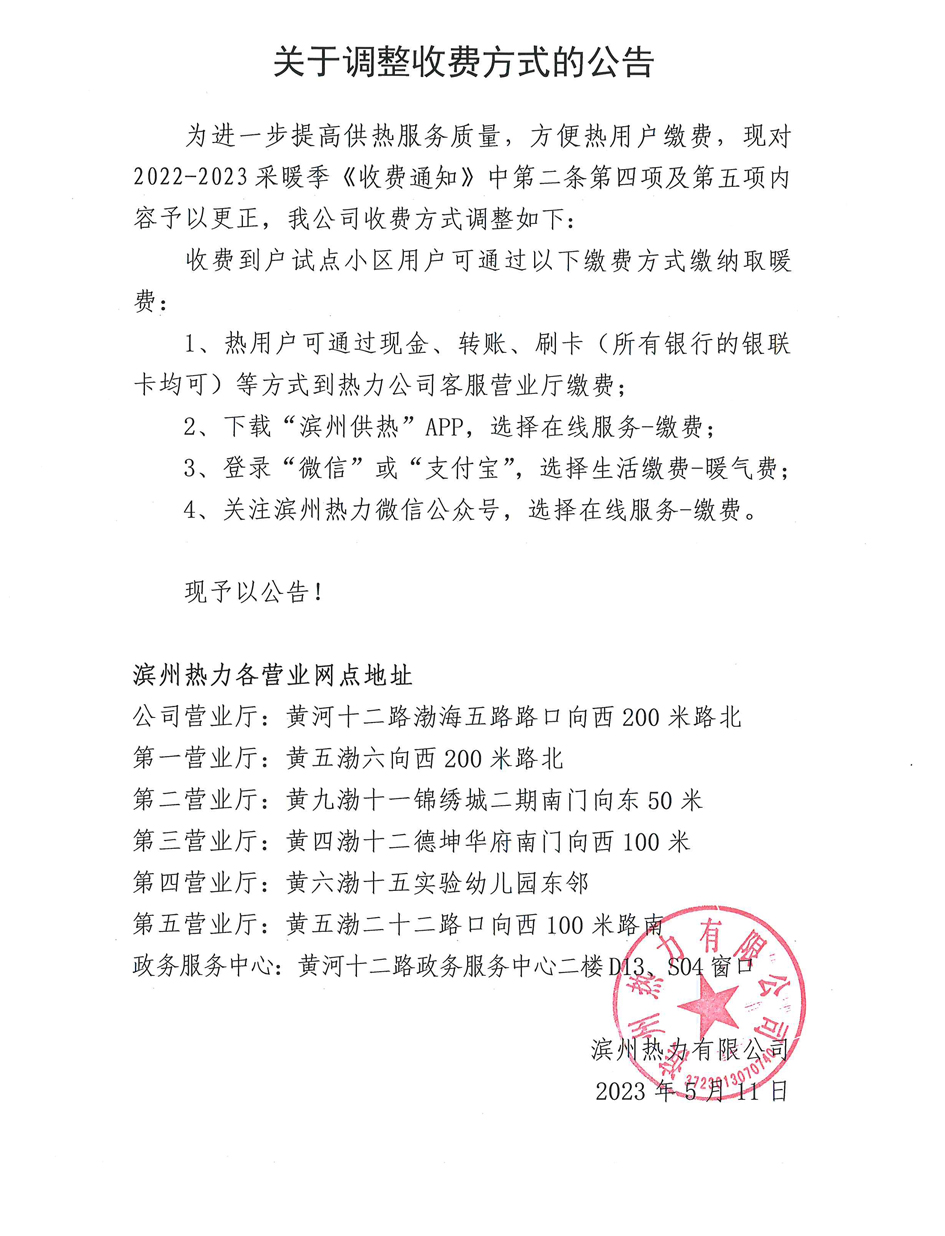 關(guān)于調(diào)整收費(fèi)方式的公告